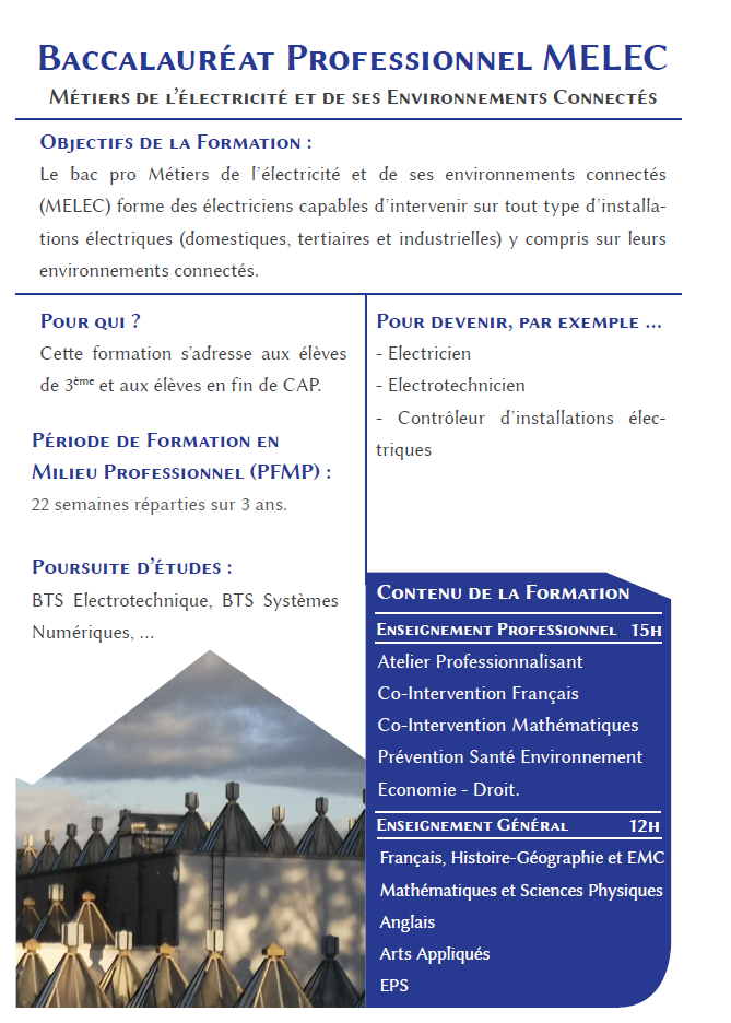 Bac Pro Métiers de l'Electricité et de ses Environnements Connectés (MELEC)