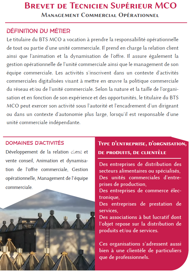 BTS Management Commercial Opérationnel (MCO) Uniquement par alternance