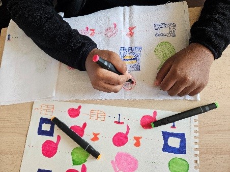 Guidés par l’artiste, les élèves ont transformé leurs idées en créations en utilisant différents matériaux, tels que le tissu, la peinture ou les feutres.